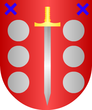 Reina Reyna Linaje de origen castellano. Armas En campo de gules, seis bezantes de plata y en medio, puesta en palo y punta hacia abajo, una espada del mismo metal encabada de oro. Algunos añaden en los cantones del jefe un aspa de azur. |
