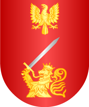 Castellano, de Ayuelas, en el partido judicial de Miranda de Ebro (Burgos). Armas 1.- En campo de gules medio león de oro coronado y rampante, que lleva en su mano diestra una espada de plata con la guarnición de oro; en jefe, un águila volante exployada de oro. 2.- Otros traen: En campo de plata, nueve losanges de gules puestos en tres palos. |