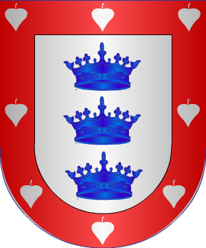Radicado en Puerto Rico. En oro, cuatro palos, de gules. Bordura de azur con ocho cruces, de oro. (Ref.: CADENAS) |