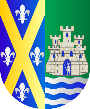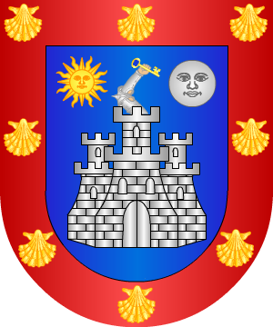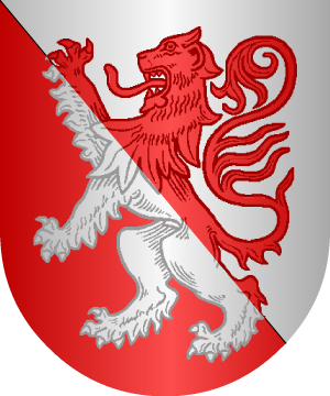 Tronchado de plata y gules, con un león, del uno en el otro. (Ref.: CADENAS). |