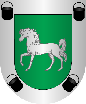 Cantabro. Radicado en Almería. Traen: En sinople, un caballo, de plata, pasante. Bordura de plata con cuatro calderas de sable en los cantones. (ref.: CADENAS), (ref.: ATIENZA), (Ref.: CRESPO DEL POZO). |