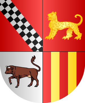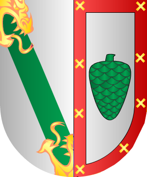 Sánchez de Toca, traen: En gules, un castillo, de plata, almenado y mazonado de sable, aclarado de gules y saliendo de su homenaje una bandera, de azur. (ref.: CADENAS). |