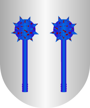 1.- En campo de gules, seis bezantes de oro, puestos en dos palos, y el cordón de San Francisco, al natural, puesto en situación de orla.