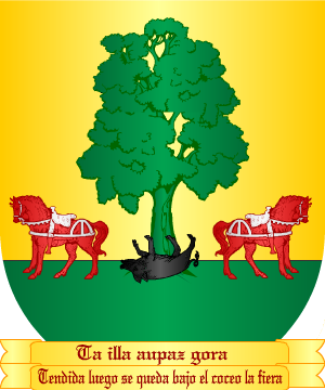 2.- Los originarios de Angulo y radicados en Amurrio (Álava), según Vicente de Cadenas, usan: En campo de oro, un árbol, de sinople, terrasado de lo mismo, con un jabalí, de sable, muerto, boca arriba, atravesado al pie del tronco, acompañado de dos caballos, de gules, aculados, bridados y ensillados de plata. 3.- Otros: En campo de oro, un árbol terrasado de sinople y un jabalí de sable, muerto, boca arriba, al pie del tronco acostado de dos caballos de gules, uno a cada lado del tronco opuestos de ancas. 4.- Otros: En campo de plata, cinco candelas, de oro, ardiendo, puestas en faja. Información de estos linajes por cortesía de blasonari.net |