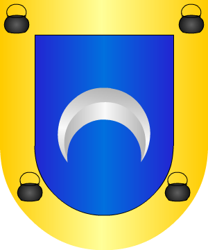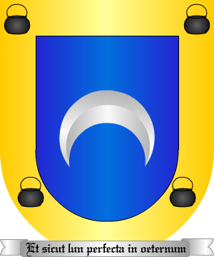 2.- Algunas acrecentaron ese escudo con una bordura de oro cargada de cuatro calderas de sable. 3.- Algunos de esta familia ponían en bordura cuatro calderas de sable, y por lema: "Et sicut lun perfecta in oeternum". 4.- Otros, también en Orihuela, pintaron el creciente siniestrado, y la bordura de plata con las cuatro calderas de sable.