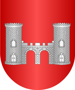 6.- Los de Castilla, según Francisco Fernández de Béthencourt, y los de Canarias, Jaén y Murcia, usan: En campo de gules, cinco torres de oro, puestas en sotuer. Dichas armas constan en la iglesia de Santa María de la Fuente, de Guadalajara.