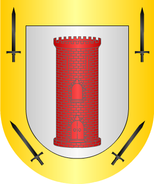 49.- Otros: En campo de azur, una torre de plata. 50.- Los Marqueses de Torres Cabrera traen: Escudo partido: 1º, en campo de azur, cinco torres, de plata, puestas en aspa; cortado de sinople, con una banda, de azur, perfilada de oro y engolada en dragantes del mismo metal, y 2º, en campo de plata, dos cabras, de sable, surmontadas de tres bandas ondeadas de azur. Bordura de gules con ocho aspas de oro y ocho veneras de plata, alternando. 51.- En el expediente del Caballero de la Orden de Alcántara de Ignacio de Medina y Torres, natural de Sevilla, año 1856, constan: En campo de gules, una corona real de oro rodeada de cinco torres de plata. 52.- Adalberto Nunes de Silva de Torres, natural de Lisboa, obtuvo la siguiente certificación de armas por su apellido Torres de Tejada por Juan Félix de Rújula y Vaca, Cronista y Rey de Armas del Rey Don Alfonso XIII, el 30 de Septiembre de 1952: Escudo cuartelado por una cruz paté de oro: 1º, en campo de sinople, dos castillos de oro con una bandera de plata en cada uno, cargado de una cruz de gules; 2º, en campo de azur, dos crecientes de plata con trece estrellas de oro alrededor; 3º, en campo de plata, un león de púrpura, armado, linguado y coronado de oro, y 4º, en campo de plata, un roble o tejo con un oso atado al tronco en un montecillo; bordura de oro con trece veneras de plata o acero alternadas con trece cruces de Santiago. Bordura de plata con este versículo: "Laudemos viros gloriosos et parentes nostros in generatione sua". Alrededor del escudo trece banderas de azur, cargadas de un menguante de plata. Por timbre celada de oro casi de frente y coronel del mismo metal muy parecido a corona ducal, y encima un león de púrpura naciente coronado de oro, de cuya boca sale una cinta de azur con este lema: "Beatificamus eos qui sustinuerunt", en letras de oro. 53.- Otros: Escudo cuartelado: 1º, en campo de plata, una barra, de azur, acompañada de dos flores de lis del mismo color; 2º, fajado de azur y oro en cuatro órdenes; 3º, en campo de gules, un brazo armado saliente del flanco siniestro, y en la mano una bandera, de plata, cargada de una cruz, y 4º, en campo de plata, tres flores de lis, de azur. 54.- Otros: En campo de oro, un castillo, de púrpura, aclarado de azur. 55.- Otros: En campo de gules, una torre, de oro, adiestrada de un león, de gules fajado de plata, empinado a sus almenas. 56.- Otros: Escudo cuartelado: 1º y 4º, en campo de azur, cinco torres, de plata, puestas en aspa, y 2º y 3º, las armas de Portugal. 57.- Otros: En campo de oro, dos torres, de plata, acostadas a su flanco diestro de tres balas, de cañón, puestas en palo y en el siniestro de una rodela, de plata. 58.- Otros: En campo de azur, tres torres, de gules, puestas una y dos. 59.- Otros: En campo de gules, tres torres, de oro, puestas en banda, almenadas y mazonada de sable. 60.- Otros: Escudo cuartelado: 1º y 4º, en campo de azur, una torre, de plata; 2º, ajedrezado, de oro y sable, y 3º, de gules. 61.- Otros: En campo de gules, dos torres, de plata, unidas por un puente del mismo metal. 62.- Otros: En campo de sinople, una torre, de oro, con dos guerreros en su puerta. 63.- Otros: En campo de plata, una torre, de gules con dos cañones saliendo de sus troneras. Bordura de oro, con cuatro espadas, de sable. 64.- Otros: En campo de plata, una torre, de gules, con una bandera, de plata colgada en sus almenas. 65.- Otros: En campo de plata, una torre, de gules, acompañada de dos calderas, de sable. 66.- Otros: En campo de sinople, una torre, de oro, resaltada de una faja de gules. 67.- Otros: En campo de oro, una torre, de azur, sobre ondas de azur y plata y acompañada de dos flores de lis, de azur. 68.- Los Marqueses de Casa Torres, apellidados Torres-Ayala, usan: Escudo partido: 1º, en campo de azur, cinco torres de plata, puestas en sotuer, y 2º, en campo de plata, dos lobos de sable, uno sobre otro; bordura de este campo de gules, con ocho aspas de oro. 69.- Los apellidados Torres del Cerro traen: En campo de plata, un jarrón, de sinople, gringolado de tres sierpes del mismo color. 70.- Los apellidados Torres-Gil usan: En campo de sinople, tres hoces, de plata, encabadas, de sable. 71.- Los apellidados Torres del Molino traen: En campo de gules, una cotiza, de oro. Bordura, de gules con ocho aspas, de oro. 72.- Los apellidados Torres de Navarra usan: En campo de azur, una fuente, de oro, mazonada de sable y acostada de dos encinas, de sinople, fileteadas, de oro. 73.- Los apellidados Torres de la Orden traen: En campo de plata, un roble, de sinople, con un lobo atravesado a su tronco. 74.- Los apellidados Torres de Pardo usan: En campo de plata, una campana de sable. Bordura de gules con ocho aspas, de oro. 75.- Los apellidados Torres del Pino traen: En campo de plata, una cruz, de gules. 76.- Los apellidados Torres de Portugal, Condes del Villar, usan: Escudo cuartelado en sotuer: 1º y 4º, en campo de azur, cinco torres de plata puestas en sotuer, y en el 2º y 3º las armas reales de Portugal. 77.- Los apellidados Torres del Pozo usan: En campo de plata, una cruz de San Andrés, de gules, recortada y acompañada de cuatro veneras, de gules. 78.- Los apellidados Torres-Quevedo traen: En campo de gules, una cruz paté, de plata. 79.- Los apellidados Torres de Soria, de Zaragoza, usan: En campo de azur, cinco torres de plata, orpasadas y puestas en sotuer. 80.- Los apellidados Torres-Solanot, de Abizanda (Huesca), traen: Escudo cortado y medio partido: 1º, en campo de gules, dos torres, donjonadas de plata, mazonadas y orpasadas de sable, una al lado de la otra, acompañadas en el flanco diestro de tres anilletes de plata y sable, puestos en palo, y en el siniestro, de un ruejo de molino de plata, perfilado y estriado de sable; 2º, en campo de plata, un pino al natural, terrazado de lo mismo, y 3º, en campo de gules, tres fajas ondeadas de azur. 81.- En el expediente del Caballero de la Orden de Alcántara Juan Torres y