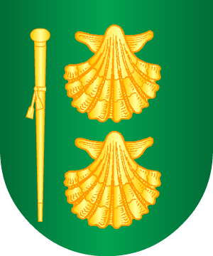 Escudo partido: 1º, en campo de oro, un águila rampante de sable, armada y lampasada de gules, y 2º, en campo de plata, una cruz pometeada de sable, acompañada en jefe de cuatro lobos andantes de sable, puestos dos y dos, en palo, y en punta de otros cuatro lobos andantes de sable, en la misma situación, y cantonada de cuatro sotueres de oro.