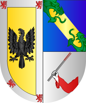 Castellano, de la villa de su nombre, en el partido judicial de Santa María de Nieva (Segovia). Armas En campo de oro, un aguila de sable, y bordura de plata con cuatro leones de gules; medio partido de azur, con una banda de oro engolada en bocas de dragones del mismo metal, y cortado de plata, con un brazo vestido de gules y puño blanco, que sostiene en la mano una barra de hierro al rojo. |