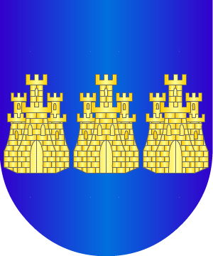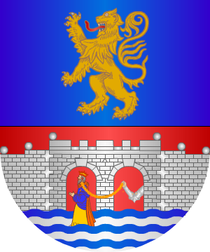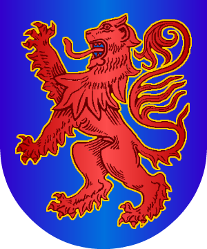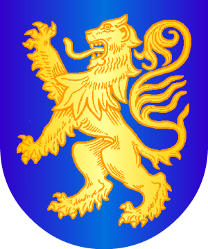 frutado de oro, superado -a su vez- de león rampante de oro, coronado,