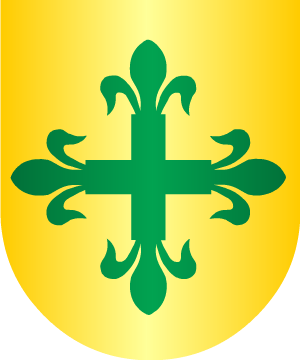 oro, surmontada de una corona del mismo metal, y en el jefe el lema "Ave