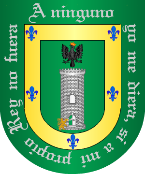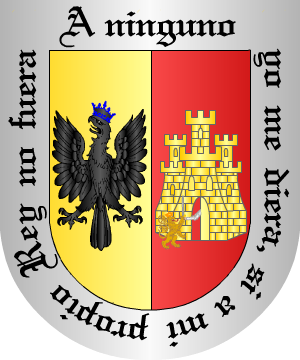 de oro, coronado del mismo metal y colocado bajo la puerta. Bordura de plata,