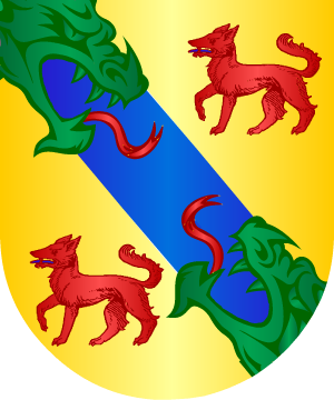 engolada en cabezas de dragones de sinople y acompañada de dos lobos