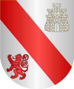 tienen: En campo de plata, una banda jaquelada, de gules y oro, en dos órdenes,