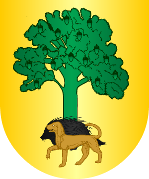 de oro, un roble de sinople, y al pie del tronco un puerco espín pasante,