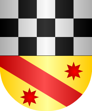 tienen: En campo de plata, una banda jaquelada, de gules y oro, en dos órdenes,