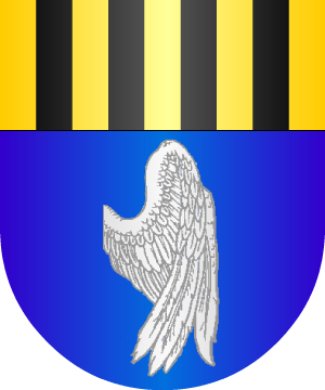 En campo de oro, dos cetros puestos en aspa, surmontados de una cabeza de carnación