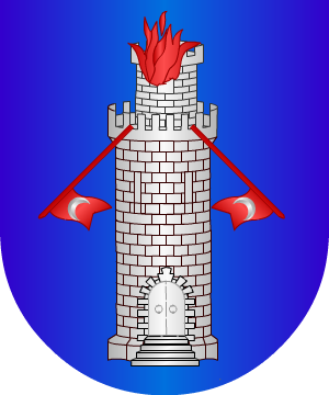 de moro, rodeado por diez cruces de calatrava. 14.- Después de la Conquista de Zahara les fueron concedidas las siguientes: En campo de azur, una torre de plata donjonada de una torre ardiente almenada, armas de los Ayllón adoptadas en 1472 por el Alcalde de Arcos de la Frontera Juan de Ayllón en memoria de la toma de Cardela, a las que agregaron dos banderas de gules, con creciente ranversado de plata, en 1483, por la que arrebataron a los moros en la toma de Zahara. 15.- Otros Ayllón: En campo de sinople, tres cruces pometeadas de oro. Nota sobre Lucas Vázquez de Ayllón de la Real Academia de la Historia. No nos consta que exista escudo heráldico. Complemento de información de estos linajes por cortesía de blasonari.net |