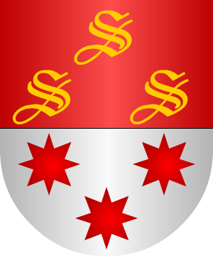 En campo de oro, dos cetros puestos en aspa, surmontados de una cabeza de carnación