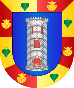 MDXXXV". 9.- Los originarios de Alcántara (Cáceres) y sus ramas en Nápoles en 1501, Lucera y Florencia (Italia), según G.B. Di Crollalanza, traen: En campo de gules, una espada de plata, guarnecida de oro, con la punta hacia arriba, acompañada de tres coronas de lo mismo, puestas una en jefe y una a cada lado. 10.- Otros, en Vizcaya, según el doctor Labayru, traen: En campo de sinople, una vaca, a la que prende con la boca un lebrel. Bordura de gules, con ocho veneras de oro. 11.- Otros, también en Vizcaya y en otros puntos, ostentan escudo de azur, según Labayru, con un cisne blanco sobre ondas de azur y plata. 12.- Otros, también en Vizcaya y en otros puntos, ostentan escudo de azur, según Gracia Dei, con un cisne blanco sobre ondas de azur y plata. 13.- Juan Francisco de Hita, por último, manifiesta que un caballero llamado Hernán Martínez de Aldana, que fue Capitán en tiempos del Rey Don Juan II de Castilla, traía por concesión especial de este Monarca un escudo de oro con dos flores de lis de azur. 14.- En el expediente del Guardia Marina José Aldana y Ortega, natural de Sanlúcar de Barrameda, año 1774, consta el siguiente escudo: Escudo partido: 1º, en campo de gules, cinco flores de lis de oro, puestas en sotuer, y 2º, una torre, acompañada de una bandera en el homenaje. 15.- Otros Aldana, según Agustín de Loaysa, traen: En campo de gules, una banda de oro, acompañada de dos flores de lis de plata. 16.- Otros: En campo de oro, dos lobos andantes, de sable, uno sobre otro. Bordura de gules, con una cadena de oro de ocho eslabones. 17.- Otros: En campo de gules, un cabrío, de plata, acompañado de tres lises de oro. Información de estos linajes complementada por cortesía de blasonari.net |