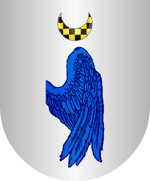 un creciente jaquelado de oro y sable. 4.- Otros traen: En campo de oro un medio vuelo de azur surmontado por una estrella del mismo color. 5.- En campo de azur medio vuelo bajado y contornado de oro y sobre ondas de plata y azur. Bordura de ocho compones de oro. 6.-Los de las casas de Lérida y Tortosa usan: Escudo de azur, con una flor de lis de oro y cuatro crecientes de plata, apuntados al centro. En el jefe seis estrellas de plata, cuatro en faja y las otras dos bajo los extremos de ésta. 7.- Otros, en Aragón, traen: Escudo partido: 1º, en campo de plata, un águila de sable, y 2°, en campo de gules, cinco lanzas de plata. 8.- Otros de Aragón, según J.-B. Rietstap, traen: En campo de plata, medio vuelo de azur, puesto en faja. 9.- Los de Burgos, según Vicente de Cadenas: Escudo cortado: 1º, en campo de azur, un vuelo de plata, y 2º, en campo de sinople, dos puñales de plata, encabados de oro, puestos en faja. 10.- Otros: En campo de oro, un medio vuelo bajado de azur, y surmontado de una estrella del mismo color. 11.- Otros: En campo de azur, un medio vuelo bajado y contornado de oro. Bordura de ocho piezas de oro. 12.- Los de Cataluña, según Gregorio García Ciprés, traen: Escudo de oro y en la punta una orla de azur. 13.- Otros traen: Escudo cuartelado: 1º, de... tres águilas mal ordenadas de..., 2º, de... un árbol de... surmontado de una cruz de... y entre dos palos de..., 3º, de...un monte naciente de... y sumado de un pájaro contornado de... y 4º, de... una fuente de... Información de estos linajes complementada por cortesía de blasonari.net |