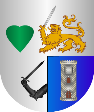 un creciente jaquelado de oro y sable. 4.- Otros traen: En campo de oro un medio vuelo de azur surmontado por una estrella del mismo color. 5.- En campo de azur medio vuelo bajado y contornado de oro y sobre ondas de plata y azur. Bordura de ocho compones de oro. 6.-Los de las casas de Lérida y Tortosa usan: Escudo de azur, con una flor de lis de oro y cuatro crecientes de plata, apuntados al centro. En el jefe seis estrellas de plata, cuatro en faja y las otras dos bajo los extremos de ésta. 7.- Otros, en Aragón, traen: Escudo partido: 1º, en campo de plata, un águila de sable, y 2°, en campo de gules, cinco lanzas de plata. 8.- Otros de Aragón, según J.-B. Rietstap, traen: En campo de plata, medio vuelo de azur, puesto en faja. 9.- Los de Burgos, según Vicente de Cadenas: Escudo cortado: 1º, en campo de azur, un vuelo de plata, y 2º, en campo de sinople, dos puñales de plata, encabados de oro, puestos en faja. 10.- Otros: En campo de oro, un medio vuelo bajado de azur, y surmontado de una estrella del mismo color. 11.- Otros: En campo de azur, un medio vuelo bajado y contornado de oro. Bordura de ocho piezas de oro. 12.- Los de Cataluña, según Gregorio García Ciprés, traen: Escudo de oro y en la punta una orla de azur. 13.- Otros traen: Escudo cuartelado: 1º, de... tres águilas mal ordenadas de..., 2º, de... un árbol de... surmontado de una cruz de... y entre dos palos de..., 3º, de...un monte naciente de... y sumado de un pájaro contornado de... y 4º, de... una fuente de... Información de estos linajes complementada por cortesía de blasonari.net |