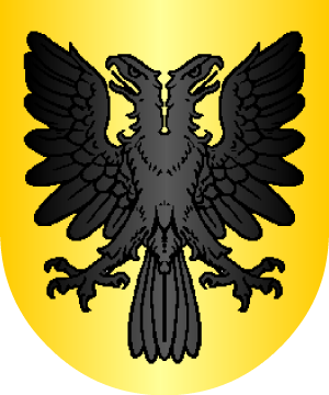 Escudo cortado: 1º cuartelado, 1º y 4º de azur, un águila