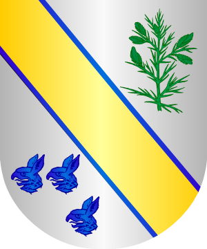 palos de oro, y la segunda partición, de azur, con una concha de plata;