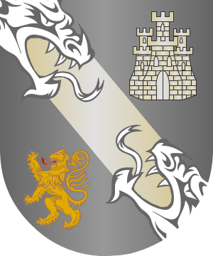 En campo de gules, una banda de oro, engolada en cabezas de dragantes, de sinople,