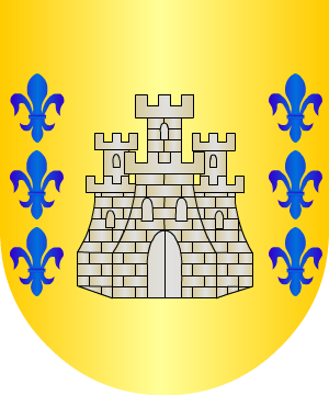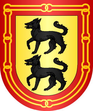 Vasco. Armas 1.- De oro, un castillo de piedra, acostado de seis flores de lis de azur, tres en cada lado. 2.- Otros traen: De oro, dos lobos andantes de sable puestos en palo. Bordura de gules con una cadena de oro de ocho eslabones. 3.- Otros traen: De sinople, una torre de plata, ardiendo y acostada de seis flores de lis de oro. 4.- Otros traen: De oro, dos lobos pasantes de sable puestos en palo. Bordura lisa de oro. |