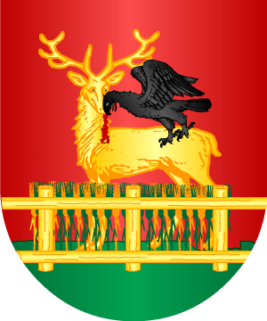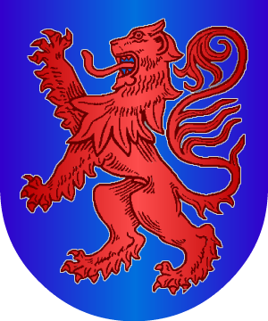 traen: En campo de oro, un árbol de sinople y un león rampante,