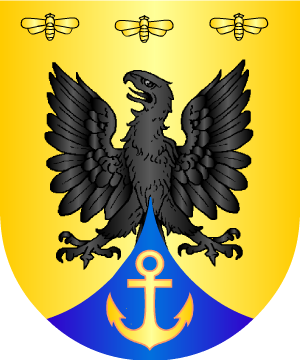 Oriundo de Bohemia, de donde pasó a España, enlazando con los duques de Baena. Armas Escudo cortinado, 1º y 2º de oro, medio águila de sable movientes de la cortina; y en ésta, de azur, un ancla de oro; el jefe de azur, tres abejas de oro. |