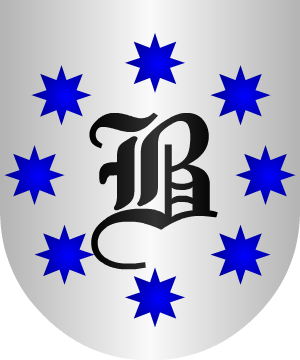diestra, y en la siniestra la cabeza de un moro. 15.- Otros, según Ave Gracia: En campo de gules, una torre de plata, y un león a su puerta. 16.- Los de Burgos, según Diego de Soto y Aguilar, usan: En campo de oro, un aspa de gules, acompañada en lo alto y en lo bajo, de una caldera de sable, y a uno y otro lado un castillo de gules. 17.- Los Marqueses de Castrofuerte, Señores de Castrofalle, Alconchel y Fermoselle, usan: Escudo partido y medio cortado, con una cruz flordelisada, cantonada de cuatro estrellas en la partición diestra, y un árbol con un perro encadenado a su tronco y una torre con dos perros a su puerta, respectivamente en las particiones de la siniestra. Timbre: Una corona de Marqués. 18.- Los Barba Figueroa usaban: Escudo partido: 1º, en campo de azur, una espada de plata, con la guarnición de oro, puesta en situación de banda, y 2º, en campo de oro, cinco hojas de higuera de sinople, puestas en sotuer. 19.- La línea de Barba Marmolejo, tiene, según Hita, este escudo: "De azur, con dos bandas de sable y dos flores de lis de oro". 20.- Los Barba Sarmiento usan: En campo de gules, un castillo de oro. 21.- Muy semejante al escudo que Pedro Vitales indica para algunos Barba, sino que aumentado con otro cuartel, es el que figura en el "Nobiliario" de Fernán Sánchez Mexía, descrito así: "Una cara de hombre muy barbada, envuelta la barba en una mano, en campo azur; mas otro cuartel, que es una torre escacada de oro y gules; puertas, ventanas y troneras negras, y una orla con una cespenadura de plata y gules". 22.- Otros Barba, según Juan Pérez de Vargas y Baños de Velasco, tienen: En campo de gules, una torre de plata, puesta sobre una peña, que está entre aguas de azur y plata. En la puerta de la torre asoma un león de púrpura; encima de la puerta una flor de lis de azur, y a cada lado del homenaje, posadas sobre una almena, un águila de sable. 23.- Los de Portugal usan: En campo de plata, una cruz floreteada y vacía de sable, entre dos ramos de hiedra de sinople, reunidos en punta y en medio del jefe. Complemento de información de estos linajes por cortesía de blasonari.net |