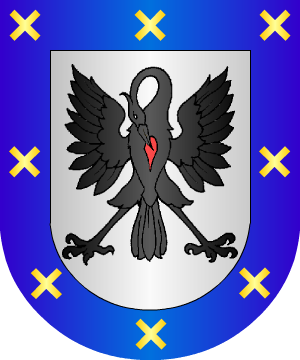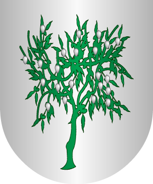 traen: En campo de azur, una flor de lis, de oro, cortado de sinople, con un
