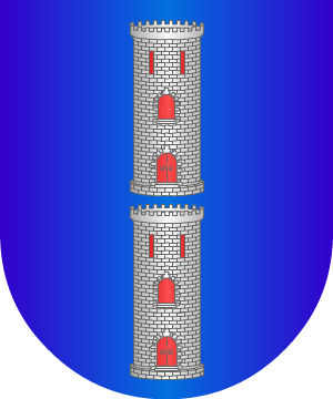 En campo de gules, un castillo, de oro, sumado de tres torrecillas de los mismo,