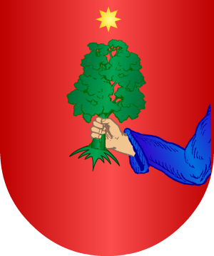 mazonada de sable. 23.- Otros de Cataluña: Escudo cuartelado: 1º y 4º, en campo de plata, una torre de gules, con la puerta de plata y mazonada de sable, y 2º y 3º, en campo de oro, un lambel con un pendiente de azur. 24.- Los Berenguer, descendientes de los Condados de Barcelona y Cerdaña, según Juan José Vilar y Psayla, traen: En campo de plata, dos cruces de San Jorge, cortinado de gules con tres bastones de oro. 25.- Otros Verenguer: En campo de oro, una encina, de sinople, con un lobo, de sable, alzado a su copa. 26.- Otros: Escudo partido: 1º, tres fajas, y 2º, un castillo. Bordura cargada de sotueres. Complemento de información de estos linajes complementada por cortesía de blasonari.net |