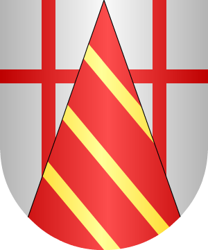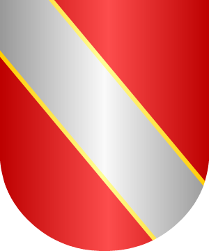 mazonada de sable. 23.- Otros de Cataluña: Escudo cuartelado: 1º y 4º, en campo de plata, una torre de gules, con la puerta de plata y mazonada de sable, y 2º y 3º, en campo de oro, un lambel con un pendiente de azur. 24.- Los Berenguer, descendientes de los Condados de Barcelona y Cerdaña, según Juan José Vilar y Psayla, traen: En campo de plata, dos cruces de San Jorge, cortinado de gules con tres bastones de oro. 25.- Otros Verenguer: En campo de oro, una encina, de sinople, con un lobo, de sable, alzado a su copa. 26.- Otros: Escudo partido: 1º, tres fajas, y 2º, un castillo. Bordura cargada de sotueres. Complemento de información de estos linajes complementada por cortesía de blasonari.net |