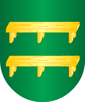 de sinople, puestas en sotuer; 2º y 3º, de gules, con un castillo