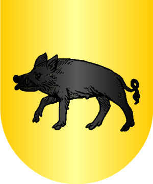 Escudo mantelado: 1º, en campo de gules, tres palos de oro; 2º, en