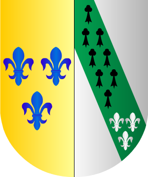 en campo de azur, una banda de oro, con dos flores de lis opuestas de color