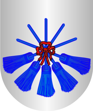 Escudo mantelado: 1º, en campo de gules, tres palos de oro; 2º, en