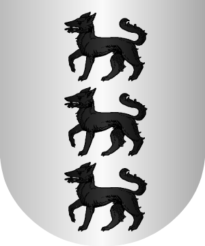 Escudo mantelado: 1º, en campo de gules, tres palos de oro; 2º, en
