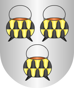 siglo XVI, usando por armas: En campo de gules, tres calderas de oro. 5.- En el expediente del Caballero de San Juan Ramón Calders Meca Armengol y Destorrents, constan las siguientes armas para los originarios de Cervera: En campo de gules, tres calderas de oro con ondas de sable en medio. 6.- Los del Rosellón usan: Tres calderas, la de la punta más grande, y acompañada en el centro del jefe un escudete con tres fajas. 7.- En el expediente del Caballero de San Juan Jerónimo Calders Fivaller Sunyer y Boxadors, constan las siguientes armas: En campo de gules, tres calderos de oro, con una cabeza de sierpe, unas ondas de sable en medio y un asa de sinople. Por cimera un dragón de sinople. 8.- Los radicados en Barcelona, según Vicente de Cadenas, usan: En campo de plata, dos empalizadas de azur, puestas en dos fajas. Información de este linaje complementada por cortesía de blasonari.net |