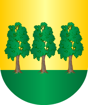 y Durán, trae: En campo de oro, cinco matas de sinople, terrasadas de