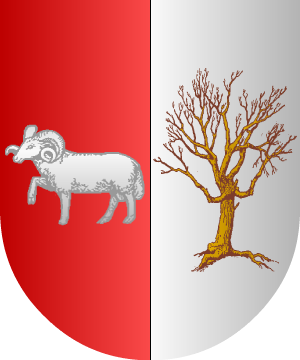 de gules, un carnero, y 2º, en campo de plata, un árbol seco; en