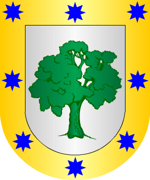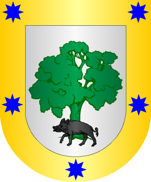 jabalí de sable al pie de su tronco. Bordura cosida de oro. 2.- En Asturias, Galicia, Andalucía y La Mancha usaron: En campo de plata, una carrasca de sinople y un lobo de sable al pie de su tronco. 3.- Otros en ambas Castillas tienen: En campo de plata, con