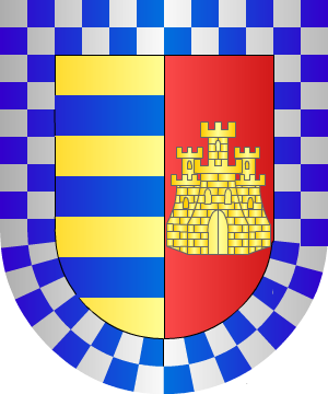 y 2º, en campo de oro, una banda de púrpura, por el apellido Albornoz. 22.- Otros Carrillo de Albornoz traen: Escudo partido: 1º, en campo de gules, un castillo de oro, aclarado de azur, por el apellido Carrillo, y 2º, en campo de oro, una banda de sinople, por el apellido Albornoz. 23.- Ignacio Carrillo de Albornoz y Carroz, Señor de Bonanaro y primer Marqués de Bonanaro, usaba: Escudo partido: 1º, en campo de gules, un castillo de oro, y 2º, en campo de oro, una banda de sinople. 24.- Otros Carrillos de Albornoz usan: En campo de oro, una encina, de sinople, frutada de gules, arrancada y con dos pájaros, picando en su copa. 25.- Los Carrillo de Córdova traen: Escudo partido: 1º, de gules, con castillo de oro, aclarado de azur, por Carrillo, y 2º, de oro, con tres fajas de gules, por Córdova. 26.- Pedro Carrillo de Mendoza, segundo Conde de Priego, Señor de Escabas y Cañaveras, usaba por armas: Escudo partido: 1º, en campo de gules, un castillo de oro, armas de Carrillo, y 2º, en campo de sinople, una banda de gules, perfilada de oro, armas de Mendoza. 27- Los Carrillo de Mendoza, de Cañaveras (Cuenca), traen: Escudo partido: 1º, en campo de gules, un castillo de oro, aclarado de azur, por Carrillo, y 2º, en campo de sinople, una banda de oro cargada de una cotiza de gules, por Mendoza. 28.- Alonso Carrillo de Peralta y Acuña, primer Marqués de Falces creado por el Rey Don Fernando el Católico en 1508, usaba: En campo de gules, un grifo de oro, alado y armado de azur. Bordura cosida de gules con ocho sotueres rebajados de oro. 29.- Los Carrillo de Acuña y Toledo también organizan sus armas en escudo partido: 1º, de gules, con el castillo de oro aclarado de azur, por Carrillo, y 2º, ajedrezado de plata y azur, de quince cuadros, por el apellido Toledo. Escusón de oro, con seis cuñas de azur en dos fajas, que son las armas antiguas del linaje Acuña. 30.- En el Sello de Alfonso Carrillo de Acuña, Obispo de Pamplona, en 1487, usaba: Escudo cuartelado: 1º y 4º, un castillo de tres torres, y 2º y 3º, nueve cuñas, puestas tres, tres y tres. Bordura con cinco escudetes con las quinas (armas de Carrillo, Acuña y Portugal). 31.- Los Carrillo de Albornoz, radicados en Daimiel, y sus descendientes, traen, según Reales Cartas Ejecutorias, las "Relaciones de Felipe II", monumentos y tradiciones familiares: Escudo partido: 1º, en campo de oro, una banda de sinople, y 2º, en campo de gules, un castillo de oro donjonado, mazonado de sable y aclarado de azur. Bordura de plata con ocho calderas de sable, cargadas cada una de tres fajas de oro, alternando con ocho armiños. Timbrado de celada terciada, sumada de un castillo de oro y un perro naciente, levantado, teniendo en su pata diestra un basto de sinople, que es la cimera del blasón. Llevan por divisa: "Non venimos de Reyes, ca Reyes viene de Nos". 32.- Así en el Mayorazgo de los Dávila-Carrillo, de Daimiel, traen: Escudo partido: 1º, en campo de azur, un castillo de oro, aclarado de gules, y 2º, en campo de oro, trece roeles de azur. Traían por divisa: "En la virtud, las manos y el corazón". Como figura en un cuadro al óleo, pintado por Nombela a principios del siglo XX, propiedad del mentado Francisco de Paula Carrillo de Albornoz y Moreno. 33.- En el expediente del Caballero de Calatrava Manuel Carrillo y González de Ocampo, natural de Vinuesa (Soria), año 1711, constan las siguientes armas para los Carrillo: Un castillo que remata en lo alto de tres torres. Bordura de doce redondelas. 34.- El Abad de Montearagón, Martín Carrillo, nacido en Zaragoza en 1561 y fallecido el 4 de Agosto de 1620, enterrado en ese Monasterio, usaba por armas: Escudo partido: 1º, de gules, con un castillo de oro surmontado de un águila del mismo metal, coronada (Carrillo), y 2º, de azur, con un sol de oro en lo alto y un cordero pascual de plata, con la bandera de lo mismo en lo bajo (Montearagón). Bordura de oro, con ocho sotueres de gules. Así se veían en la capilla de San Martín, de Montearagón. 35.- Otros Carrillo usan: Escudo cuartelado: 1º, por el Marquesado de la Vilueña confirmado a José Zapata y Lerma, en campo de gules, cinco zapatas de plata, puestas dos, dos y una, y bordura de gules con trece escudetes de oro, cargado cada uno de una banda de sable; 2º, por la baronía de Velasco, ajedrezado de quince puntos de oro y veros de plata y azur; 3º, por la varonía de Carrillo, en campo de gules, un castillo real de oro y bordura de plata con doce roeles de azur buidados, y 4º, por la línea materna de Teigeiro: cuartelado: primero, de azur, cinco cabezas de lobo de plata con collar de oro puestas una, dos y dos; segundo, de gules, un azadón de plata; tercero, de gules, nueve calderas de oro, puestas tres, tres y tres, y cuarto, de azur, cuatro flores de lis de oro, puestas dos y dos. Información de estos linajes complementada por cortesía de blasonari.net |