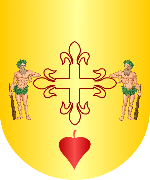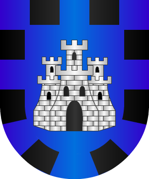 de azur, un castillo, de tres homenajes, de plata, mamposteado de sable. Bordura