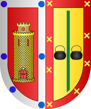 Linaje de oriundo de Cataluña. Armas En campo de oro, tres jirones de gules. Bordura jaquelada de tres órdenes de oro y gules. |