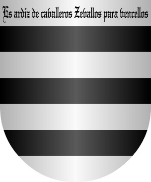 Ceballos Cevallos Seballos Sevallos Zeballos Zevallos NOTA: Este asterisco tras el número(*) indica que los colores originales no están disponibles en su descripción, por tratarse probablemente de escudos en piedra o en otros materiales no policromados. Hemos incluído los esmaltes más habituales de los linajes Ceballos y en su defecto, los habituales en heráldica (plata y azur para el agua, por ejemplo). Linaje muy antiguo, originario de la Merindad de Trasmiera, en la que tuvo su primitivo solar, del que dimanaron ilustres casas de la región de Cantabria, a la que pertenecía también la citada Merindad. Uno de los caballeros famosos de este apellido fue Fernán Martínez de Ceballos, que ganó la villa de Alarcón (Cuenca) a los moros. La casa de Ceballos, en Cianca, "era toda de piedra de sillería, de mucha autoridad y antigüedad, con mucho sitio alrededor de ella cercado de piedra y en sitio eminente a todas las del valle". Así se dice en el expediente del Caballero de Alcántara Domingo Antonio Mora y Ceballos, originario de dicha casa y natural del valle de Castañeda. En otro expediente del Caballero de Santiago Antonio Velarde y Ceballos, se añade que la casa de Cianca "era alta, con capilla dentro de la misma, muy bien adornada". Otras muchas casas fundaron los de este linaje en Cantabria, y a continuación citamos algunas. En el lugar de Aés, del valle de Toranzo (Cantabria), estuvo la torre de Ceballos el Caballero o del Caballero, a orillas del Pas y situada sobre un peñasco. La casa vivienda estaba al lado de la torre, y frente a ella levantaron "una iglesia pequeña, cubierta de hiedra, cuya advocación es Santa Ana, de la cual dijeron tener el patronato los Señores de ella, los que tienen sus entierros en la capilla mayor, en la que hay dos sepulcros muy levantados de piedra de sillería, con unos letreros antiguos que; no se pudieron leer, y uno y otro reconocimos son antiquísimos, como lo manifiesta la fábrica". Así se consigna en las declaraciones de testigos que figuran en el expediente del Caballero de Santiago Francisco Antonio Ceballos, Consejero del Real de Ordenes. Cerca de la iglesia parroquial de Aés había otras casas de Ceballos con el mismo escudo que la anterior. También tuvo palacio esta familia de Ceballos el Caballero en el lugar de San Andrés de Argomilla, del Ayuntamiento de Santa María de Cayón (Cantabria), que tenía "coto redondo de más de un cuarto de legua, con jurisdicción propia y separada". El pariente mayor de la casa era Abad perpetuo y patrono de la iglesia, y disfrutaba de los diezmos de Santelices y la Penilla y el patronato de San Martín de Posadorios. Otra casa de Ceballos radicó en Santa María de Cayón, del citado partido de Villacarriedo, y acerca de ella se encuentran estos datos en las declaraciones contenidas en el expediente del Caballero de Santiago Fernando Mirones Ceballos: "Hallamos ser una casa grande, de cuatro aguas, con su torre al lado derecho, con su coto y término redondo, dentro del cual hay una iglesia que denota gran antigüedad, con el título de San Martín de Riaño. Tienen los Señores de esta casa sus entierros a los lados de la Epístola y del Evangelio, embutidos en la pared, con sus bustos, y en la puerta de ella, como en la de la casa, están las armas". Distante medio cuarto de legua de esa casa, en la jurisdicción del lugar de San Román, perteneciente al Ayuntamiento de Santa María de Cayón, estaba sita la casa de Ceballos, llamada de Venero, de la que se dice en el mismo expediente de Santiago lo siguiente: "Hallamos ser una torre cuadrada, alta, con su cosa llana, sus troneras y barbacana; término y coto redondo y el mismo escudo de armas que la anterior, lo cual denota también mucha antigüedad y nobleza". De otra casa de este linaje, sita en el lugar de Laspresillas, del Ayuntamiento de Puenteviesgo (Cantabria), procedió el Caballero de Santiago Jerónimo de Ceballos, en cuyo expediente de pruebas declaran los informantes: "Reconocimos que (la casa) es una torre de cuatro esquinas muy antigua, con sus almenas a modo de muralla, con una ermita al lado de dicha torre y dos casas bajas: la una, al lado derecho de la torre, y la otra, en frente, y dicha torre mira al saliente y tiene un patio cercado con muralla y en medio un pozo, y por detrás un cercado muy crecido de por sí y frente un monte, y para entrar en dicha casaha y portada y encima de ella las armas de Ceballos". Esas mismas armas, que más adelante detallaremos, se veían también en la clave de la bóveda de la iglesia de San Nicolás, de Laspresillas. En el lugar de Castañeda, del valle de Castañeda, hubo otra casa de este linaje, de la que fue Señor Juan Antonio de Ceballos y Miera, y acerca de la cual se dice en el expediente del Caballero de Santiago el Capitán José Clemente Ceballos y García, hijo de dicha casa, lo que sigue: "Era una torre de tres suelos, como de sesenta pies en cuadro, toda de piedra de sillería, circunvalada de paredes fuertes a cal y canto a manera de murallas, con cubos y almenas correspondientes a trechos. Todo indica mucha antigüedad, como de casa solariega. Frente a dicha torre, dentro del patio amurallado, una ermita del glorioso apóstol Santiago, y en el lienzo de la torre que miraba a la ermita, un escudo". En el lugar de Villafufre, del valle de Carriedo, radicó una antigua casa de Ceballos. Otra, sita en la ciudad de Santander, poseía la capilla de La Concepción, en el convento de San Francisco. Otra, en el lugar de La Concha, del partido judicial de Santander, recayó en el apellido de Bárcena y Velasco. Tenía el patronato de la capilla de La Concepción, de la parroquia de La Concha. También se establecieron los Ceballos en las Asturias de Santillana, y tuvieron casas en el valle de Buelna (Cantabria), de la que dimanaron los de San Felices de Buelna y Somahoz, lugares del mismo valle; en Barreda, Santillana y Curtes, villas del mismo partido de Torrelaveg